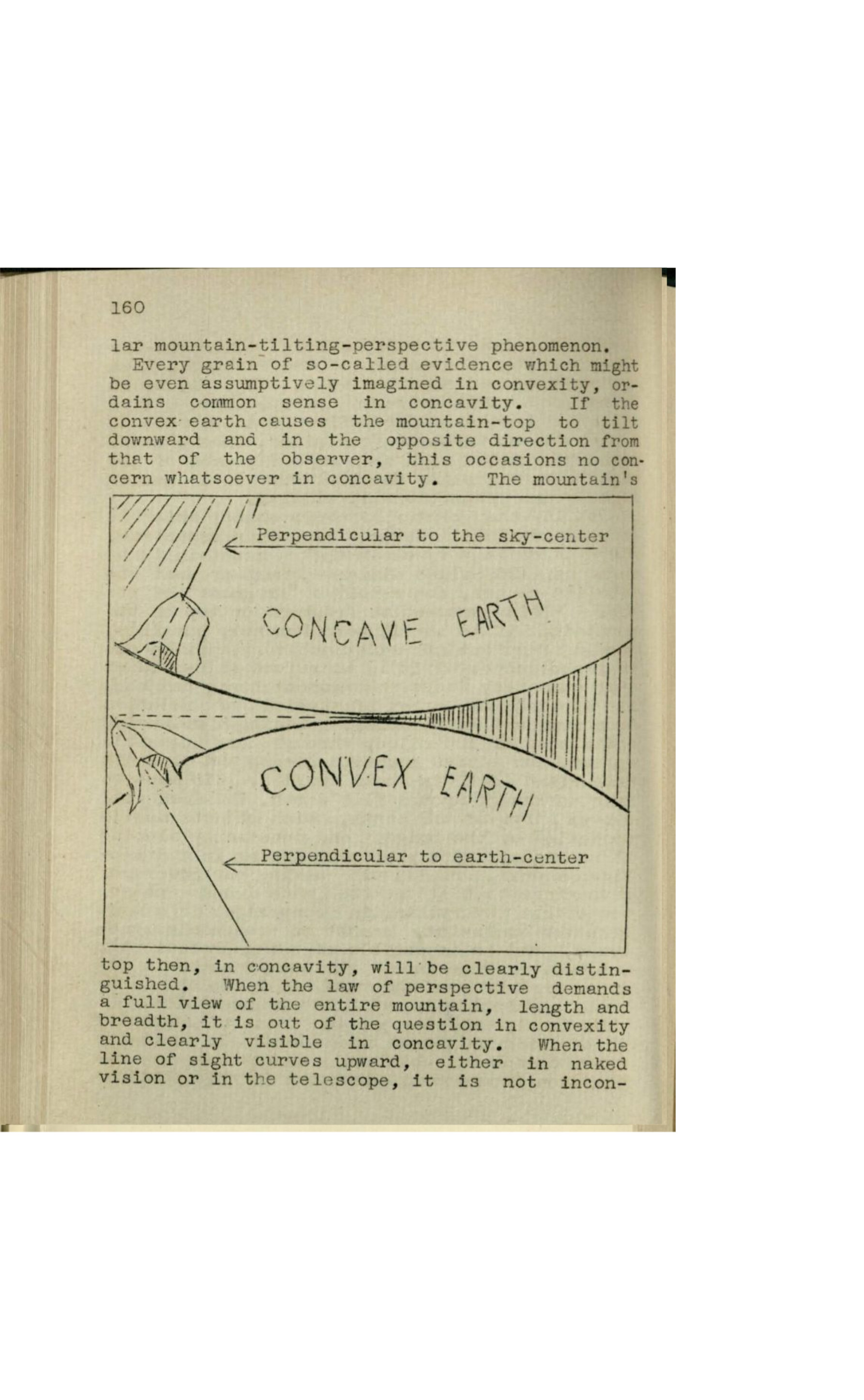 After attacking conventional evidences, Ebding contrasts them with what he calls mechanical evidence. In one major excerpt, he argues that if a straightedge or line of sight touches the Earth in more than a single tangent relation, then what is being formed is a chord of arc, not a tangent. From this he claims that line-of-sight experiments in cardinal directions demonstrate that the Earth is not convex in the way standard astronomy assumes. Instead, he says the geometrical and mechanical facts assert that the Earth is concave, and that this is the highest and “best” conclusion available to our knowledge.